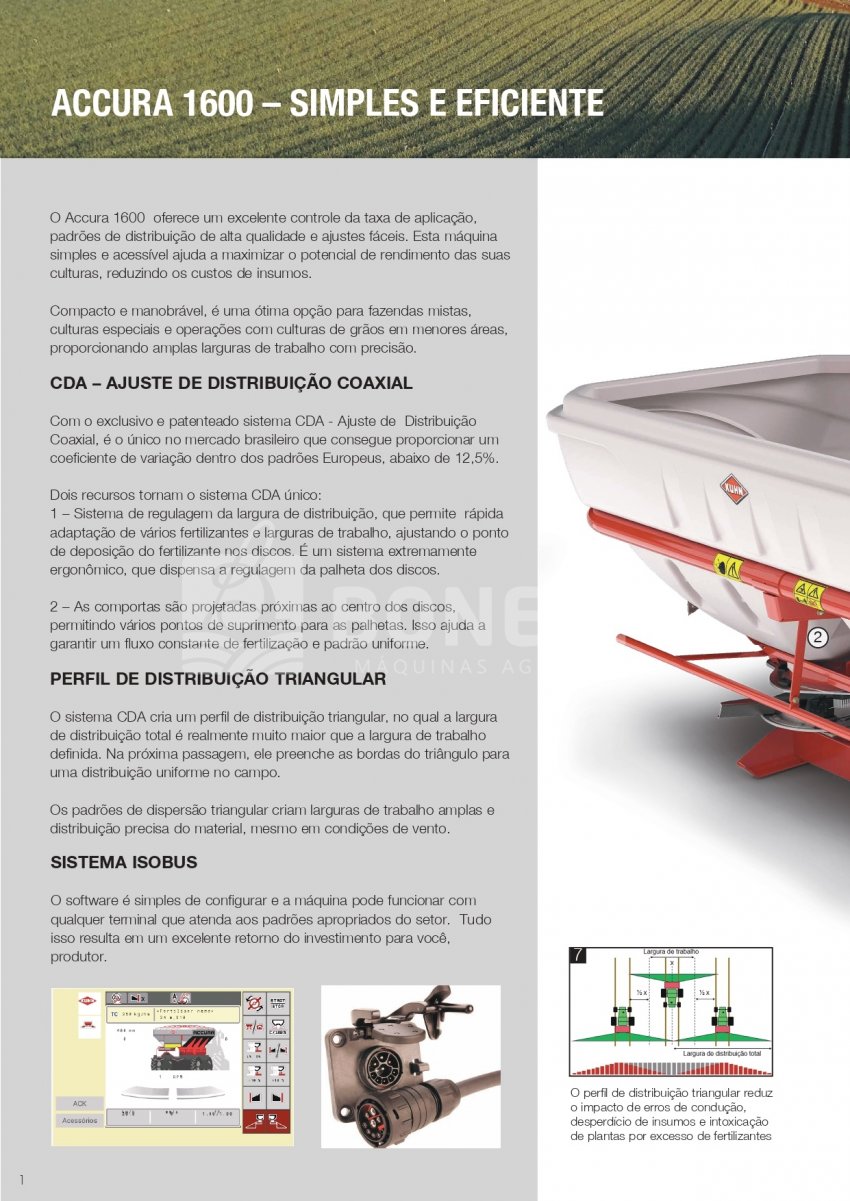 Com ajustes fáceis, o Accura 1600 fornece um controle da taxa de aplicação inigualável, garantindo total qualidade na distribuição de fertilizantes.