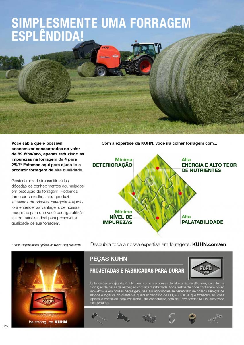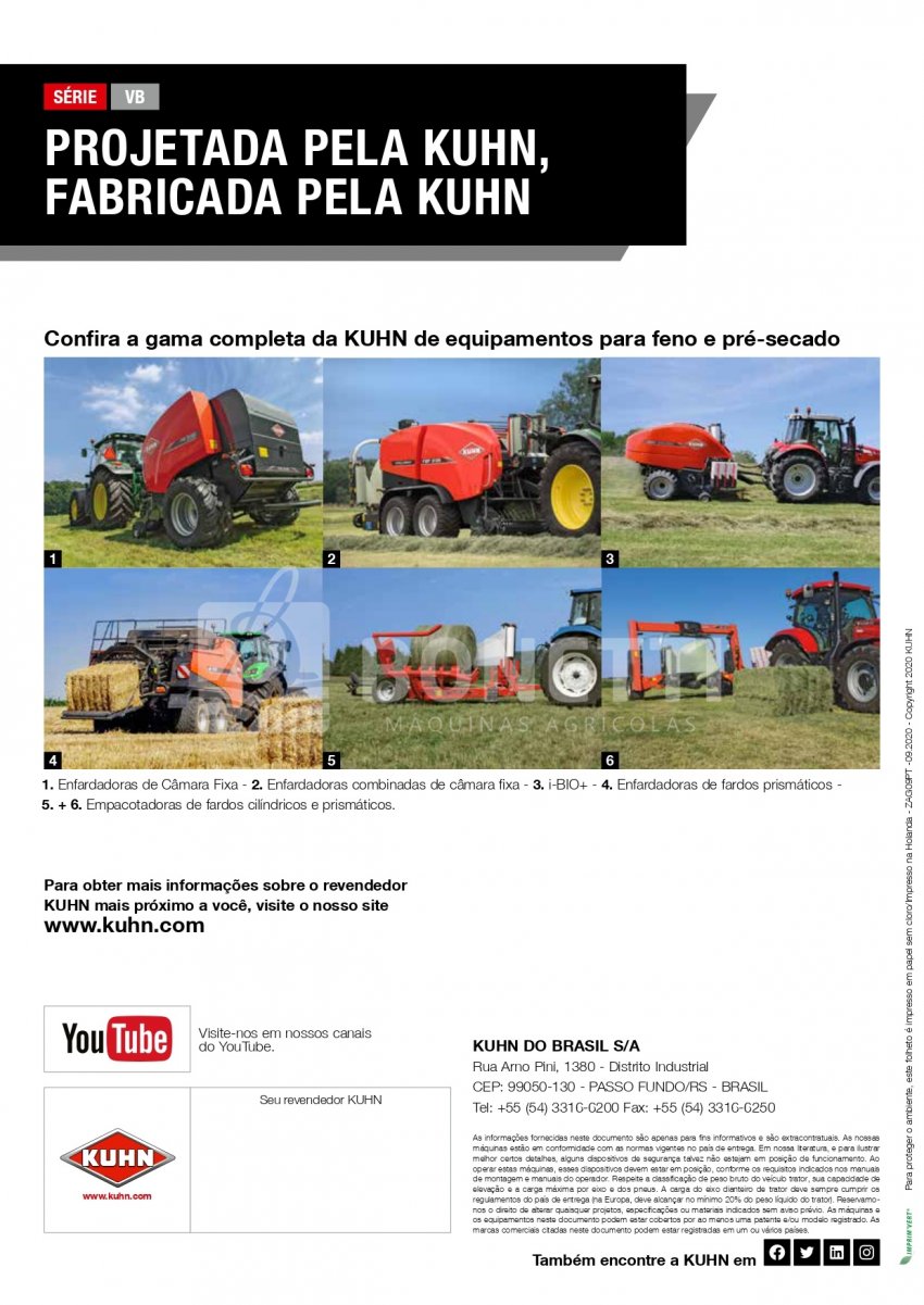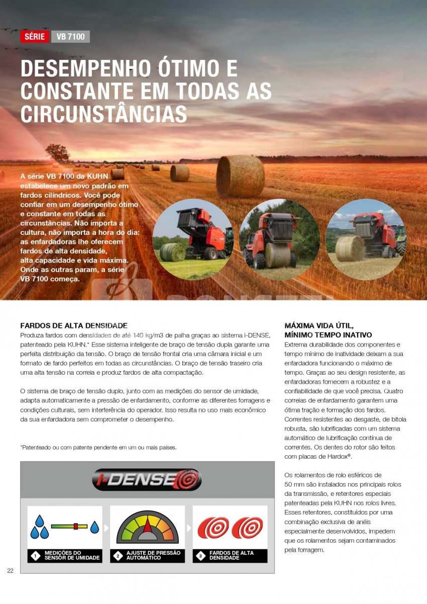 Uma ampla gama de enfardadoras cilíndricas projetadas para produzir fardos cilíndricos e densos de 80 a 160/185 cm com mais de 40 anos de experiência. Com seis modelos disponíveis, com certeza haverá uma enfardadora cilíndrica KUHN VB para aumentar a lucratividade da sua operação de enfardamento.