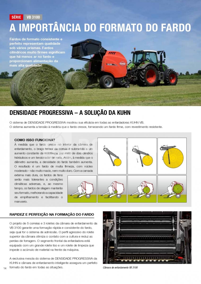 As enfardadoras cilíndricas variáveis da KUHN levam o enfardamento para o próximo nível. A Série KUHN VB 3100 oferece uma ampla gama de enfardadoras para atender às suas preferências individuais. Existe uma enfardadora VB 3100 para atender a qualquer tamanho de operação, orçamento e tipo de forragem. As enfardadoras cilíndricas de câmara variável da KUHN foram desenvolvidas com as mais recentes inovações de produtos para garantir que agricultores e prestadores de serviços em todo o mundo obtenham o máximo benefício.