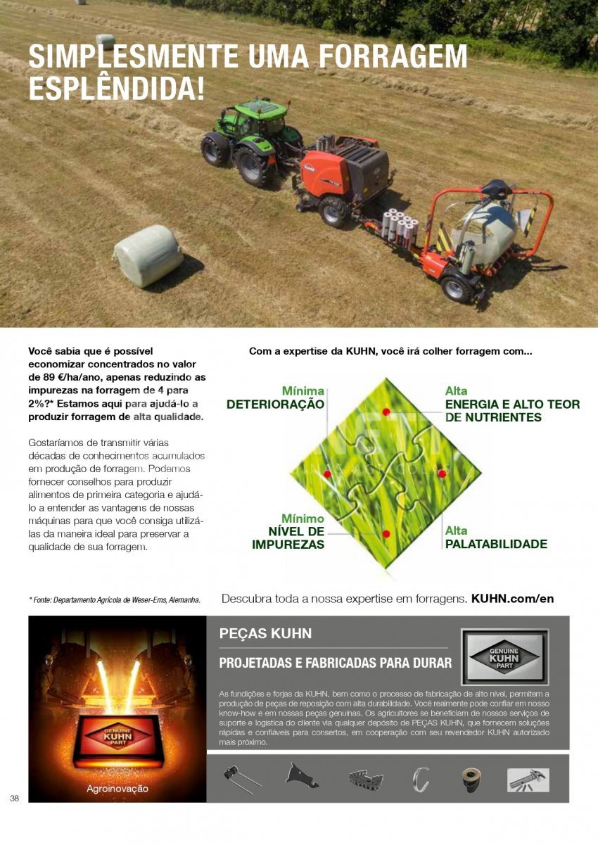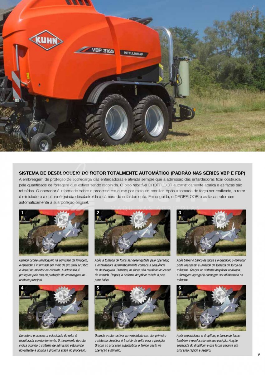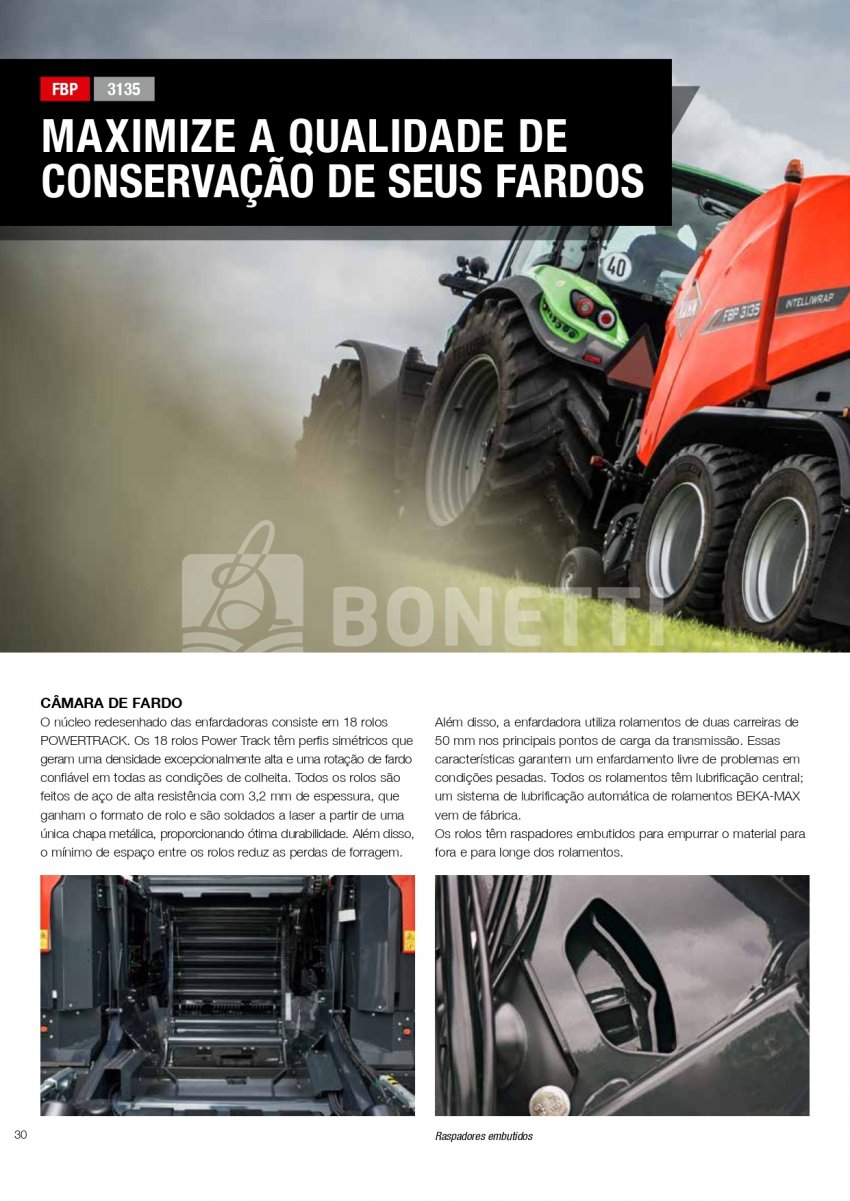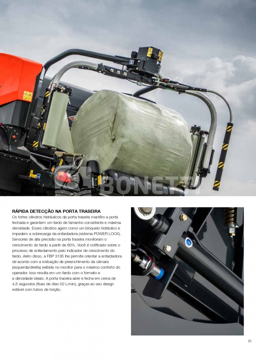 A Série KUHN VBP 3100 foi projetada para funcionar em uma ampla variedade de forragens. A transferência rápida e confiável de fardos, combinada com uma unidade de empacotamento de satélite duplo de alta velocidade, equipada com sistema 3D e INTELLIWRAP, oferece a KUHN VBP a possibilidade de otimizar o empacotamento para cada condição de trabalho, oferecendo máxima flexibilidade. Fardos densos e com formato perfeito são produzidos pela câmara de fardos PROGRESSIVE DENSITY.