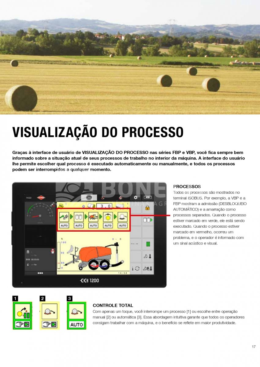 O conforto do operador e o controle máximo são garantidos usando a interface do usuário PROCESS VIEW no controlador ISOBUS.