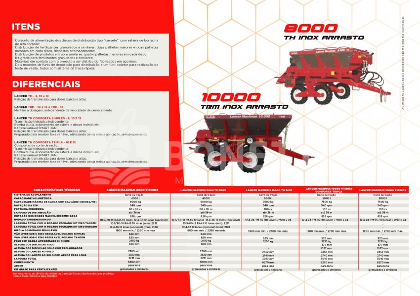 A linha LANCER MAXIMUS oferece condições para um excelente perfil e largura de distribuição de corretivos, fertilizantes e sementes. Preparado para receber taxa variável, otimizando ainda mais a aplicação, sem desperdícios.