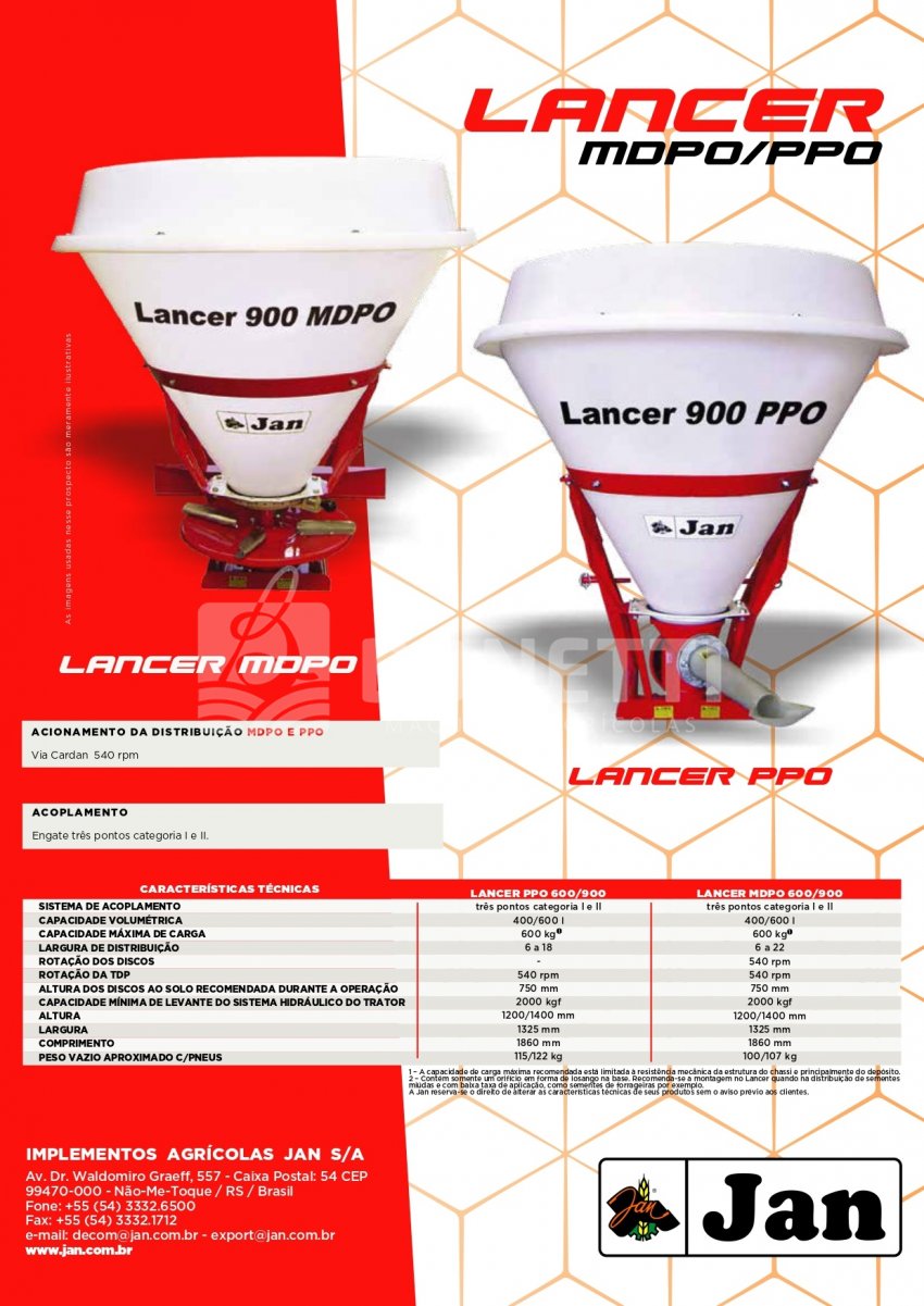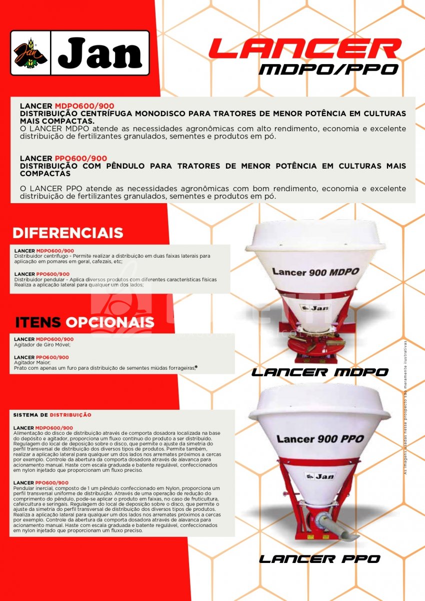 O LANCER PPO atende as necessidades agronômicas com bom rendimento, economia e excelente distribuição de fertilizantes granulados, sementes e produtos em pó.
