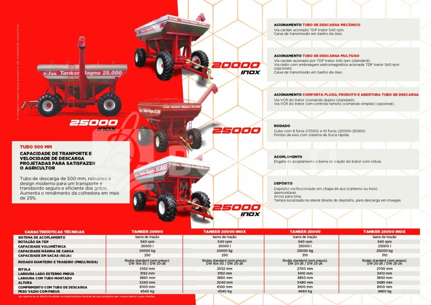 Alia robustez e design em forma de pirâmide invertida para um transporte e transbordo seguro e eficiente dos grãos, preservando sua integridade. Aumenta o rendimento da colhedora em mais de 25%.