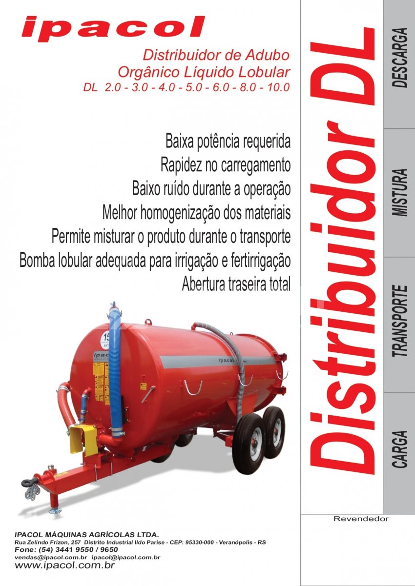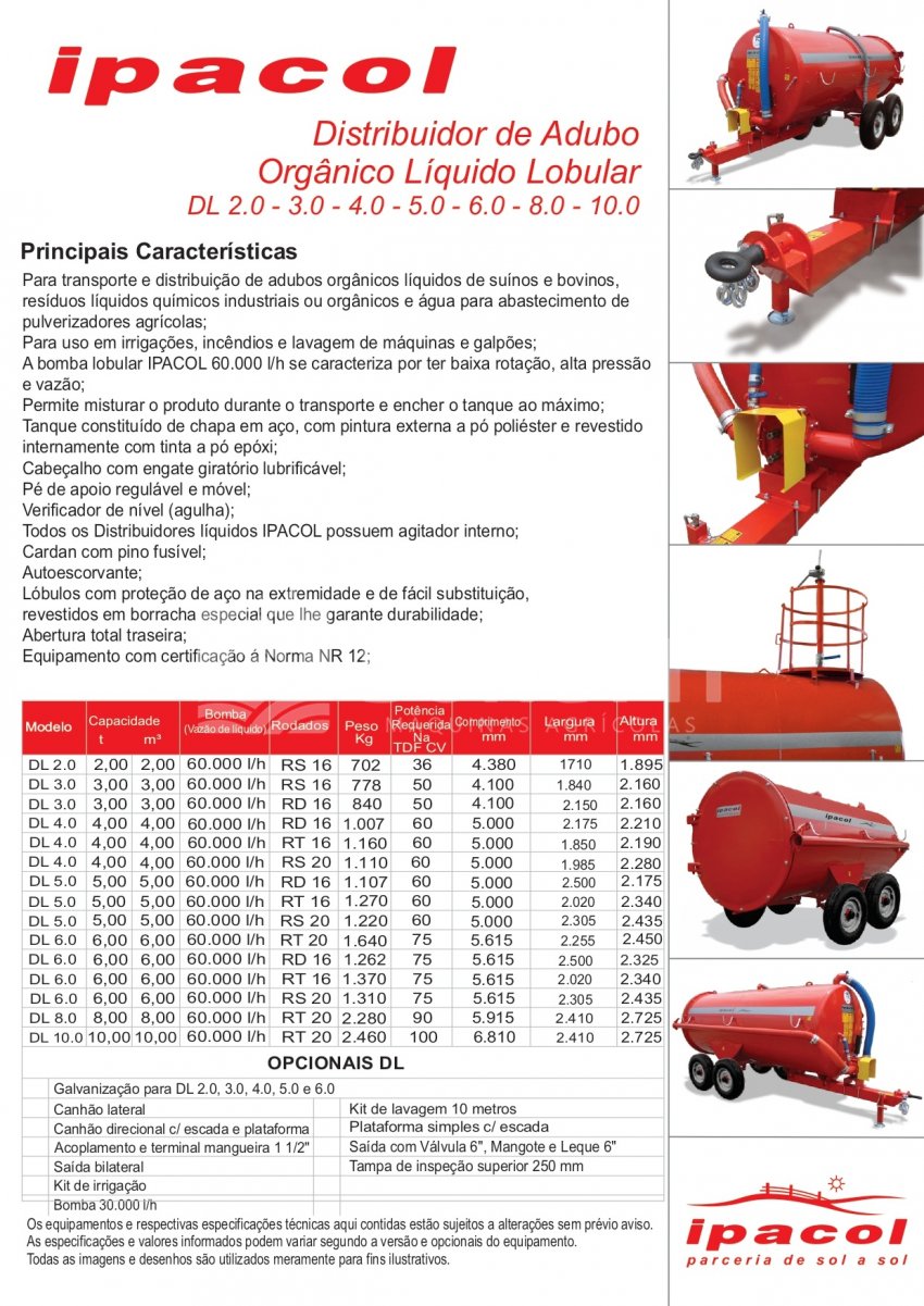 O DL da Ipacol oferece maior comodidade para transporte e distribuição de adubos orgânicos líquidos de suínos e bovinos, resíduos líquidos químicos industriais ou orgânicos e água para abastecimento de pulverizadores agrícolas.