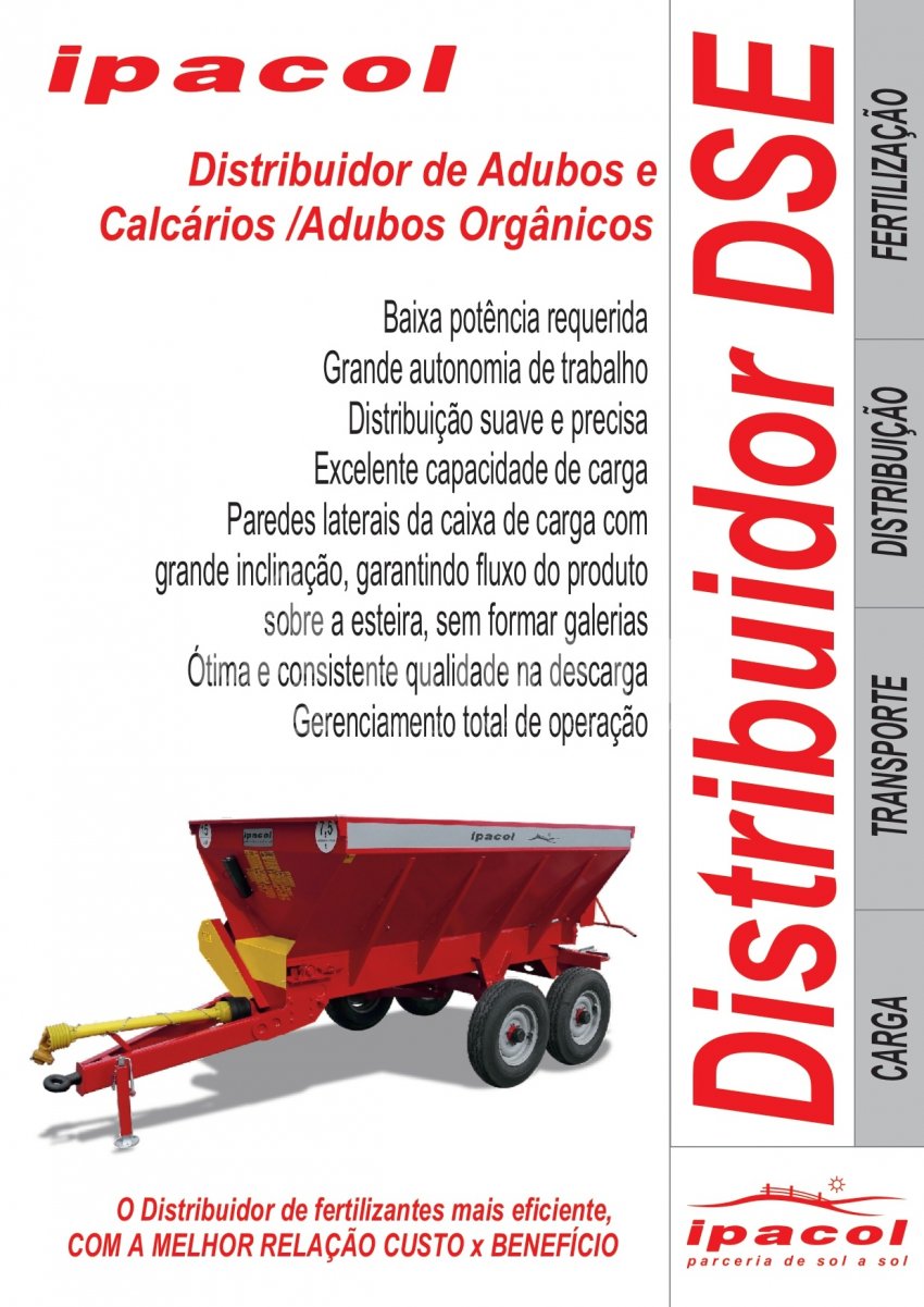 O Distribuidor de adubos e calcário da IPACOL efetua a distribuição uniforme de adubos, calcários, gesso, entre outros insumos sem interrupções e com uniformidade. Os equipamentos agrícolas da Ipacol fornecem qualidade e melhor benefício para você.